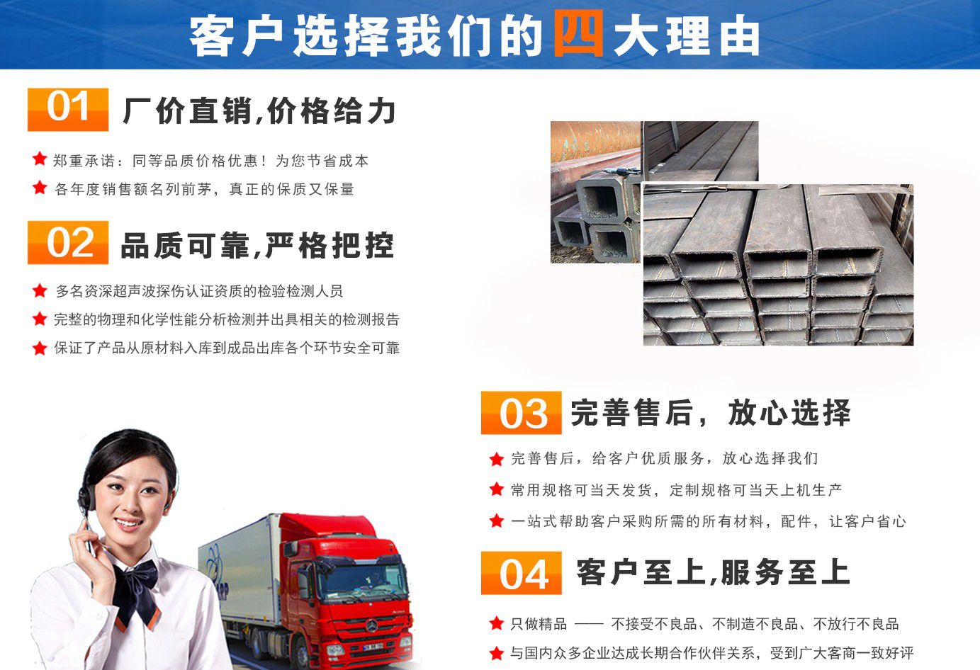 無錫盛灝特鋼有限公司長期銷售Q355B方矩管,鍍鋅方矩管,大口徑方矩管,厚壁方矩管,無縫方矩管等各種方管產(chǎn)品!產(chǎn)品廣泛應用于鋼結構建筑(鋼管混凝土、管樁、管桁架,橋梁、海上作業(yè)平臺、港口碼頭建設、電視通訊鐵塔、電力鐵塔等鋼結構管)。壓力管道(石油、天然氣、煤漿等輸送)、機械制輥等領域。 公司自創(chuàng)辦以來,一直堅持“誠信合作,共同發(fā)展”的經(jīng)營理念。 一直以來我們本著“以誠相待,以信為本,互利互惠,共同發(fā)展”的長期方針,充分發(fā)揮現(xiàn)貨資源優(yōu)勢為您提供“可靠的產(chǎn)品、過硬的質(zhì)量、完善的服務”,歡迎廣大新老客戶前來洽談業(yè)務。 公司以“至誠至信,雙利雙贏”為根本宗旨,堅持科技興企的發(fā)展策略,恪守商規(guī),創(chuàng)新進去,贏得聲譽,贏得了市場,得到了社會各階層的認可。公司以雄厚的實力、可靠的質(zhì)量、儲存鋼管門類齊全、庫存量大之優(yōu)勢,本著守法、守信、創(chuàng)新的理念,打造精品,發(fā)展鋼管多元化品種,滿足客戶各種需求,以低廉的價格、熱情的服務面向國內(nèi)外客戶,歡迎鋼管界同仁加盟!我們?yōu)榭蛻籼峁┲艿降姆?! 公司為客戶提供以下服務 服務三保: 保證質(zhì)量、保證時間、保證數(shù)量。 服務宗旨: 雄厚的實力、優(yōu)質(zhì)的產(chǎn)品、低廉的價格、周到的服務。 批零兼營,一支起定。...